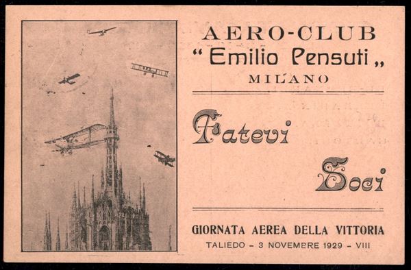 Cartolina "Giornata Aviatoria Taliedo 3-XI-1929" affrancata con 10 cent Imperiale (245) + 50 cent Aerea (2A) via aerea da Milano a Torino del 4.11.29