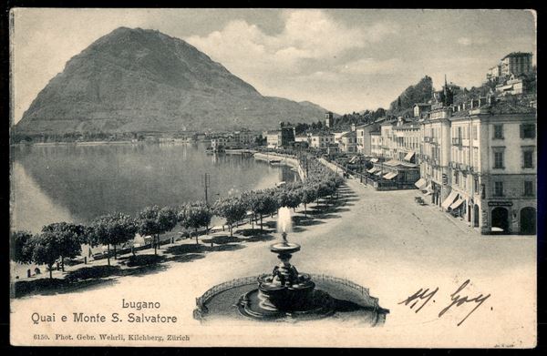Cartolina paesaggistica di Lugano affrancata con 10 cent Floreale (71) da Luino 6.10.02 per Salonicco - non comune destinazione - ex coll. Provera