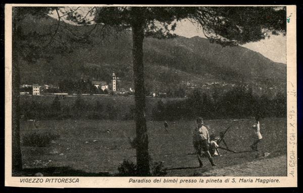 Cartolina paesaggistica "Vigezzo Pittoresca" con affrancatura mista composta da 25 cent Floreale (200) + 50 cent Imperiale (251) da Craveggia 27.12.29 per Parigi