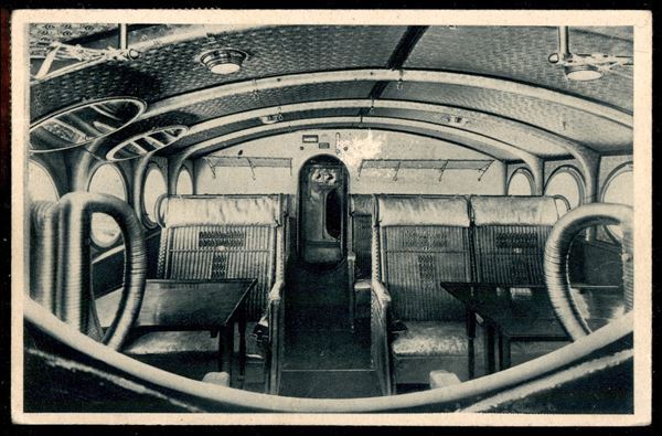 Cartolina raffigurante l'interno della cabina dell'idrovolante Dornier Superwal della socità anonima Navigazione Aerea SANA di Genova - viaggiata via aerea per Barcellona