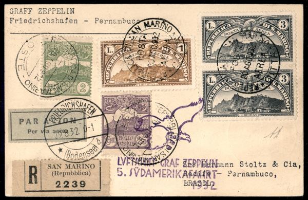 Cartoncino raccomandato viaggiato con Zeppelin 5 Sudamerikafahrt - di pregio - (Longhi 122) - AD