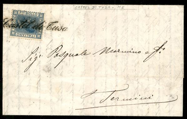 Castel di Tusa - corsivo annullatore di 20 cent (26) - lettera per Termini del 8.8.1875