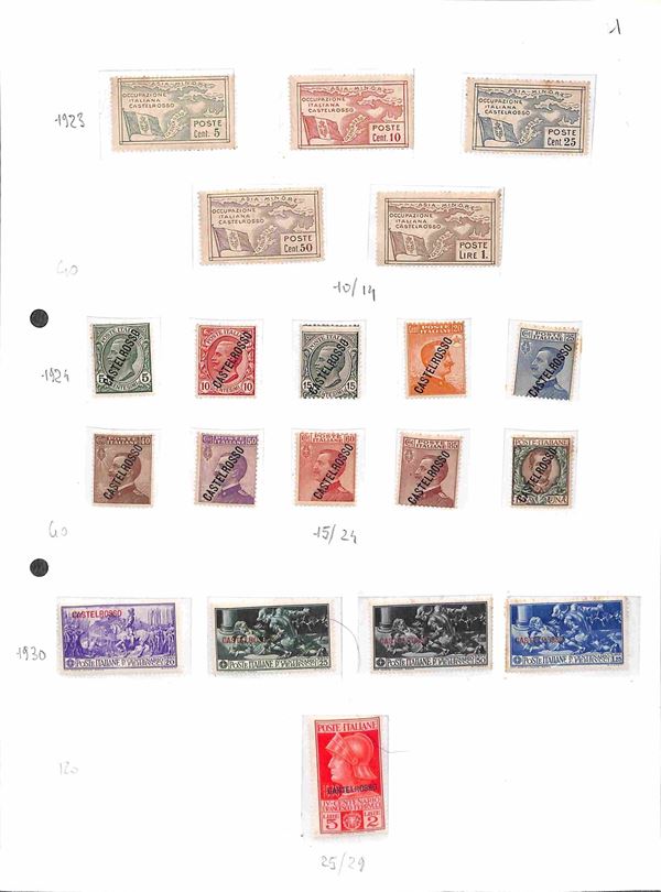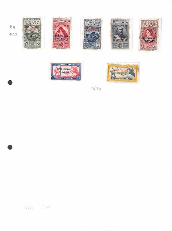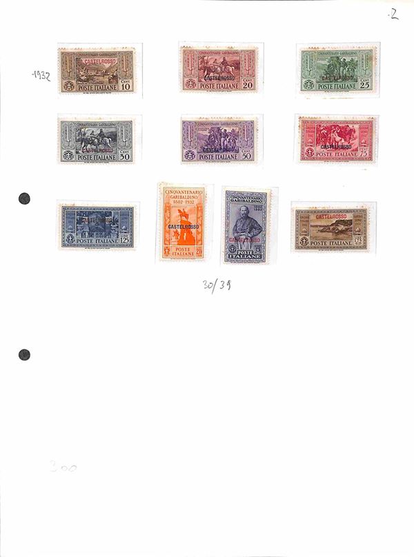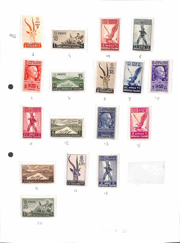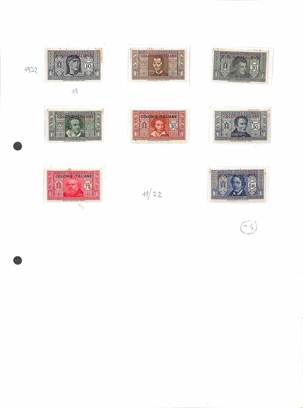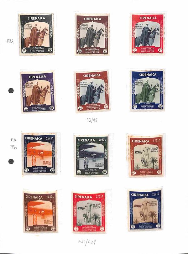 COLONIE - 1923/1938 - Insieme di serie per lo pił complete del periodo di Castelrosso Egeo Cirenaica e Africa Orientale montate su 6 fogli artigianali - evidenti segni di ruggine - da esaminare