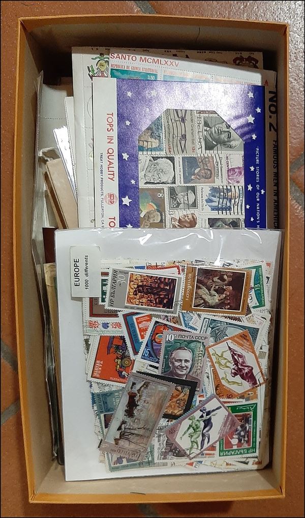 ESTERO - 1900/1980 circa - Scatola da scarpe con accumulazione del periodo con francobolli sciolti buste lettere e cartoline - insieme divertente per dettaglio
