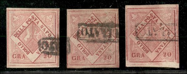 Falsi d'Epoca - 1859/61 - Tre 20 grana (F12) - usati - Chiavarello + Gazzi + Diena