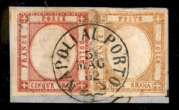 Falso per posta - 10 grana (F8) effige C + 5 grana (21) su frammento - Napoli al Porto 5.5.62 - Diena + Bolaffi