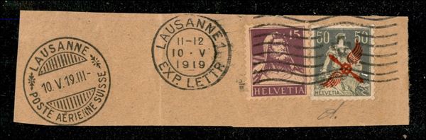 Frammento con 50 cent Posta Aerea (Michel 145) + complementare (Michel 120) annullato Losanne 10.5.19