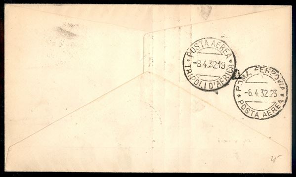 Garibaldi (315 + 32 Aerea) - 2 valori su aerogramma FDC (6 aprile 1932) da Roma a Tripoli nel giorno d'emissione