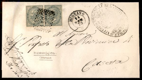 Involucro di lettera affrancato con coppia orizzontale del 5 cent (T16) da Mignano del 24 gen. 75 per Caserta