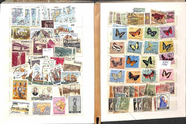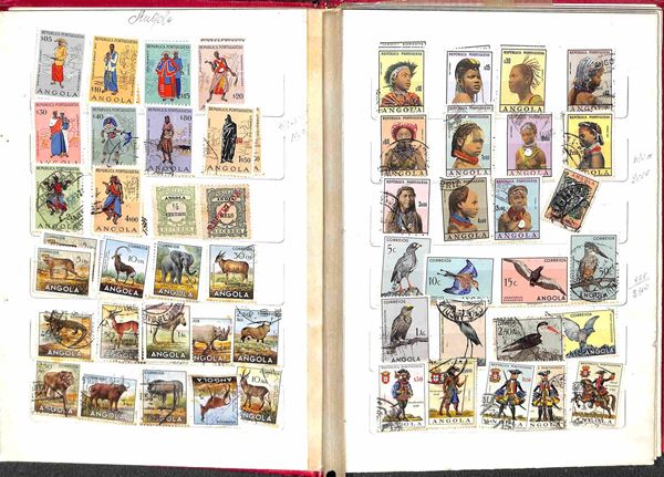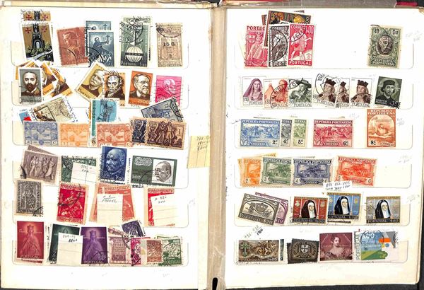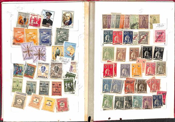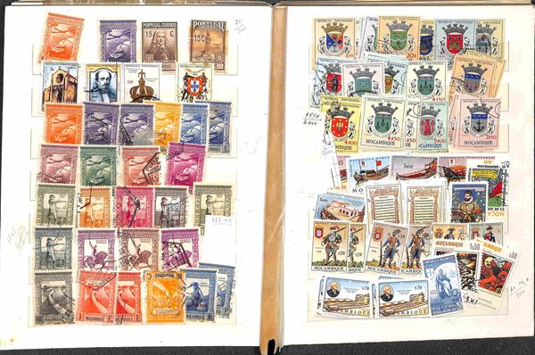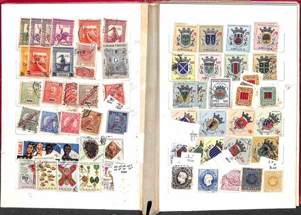 PORTOGALLO - 1870/1970 circa - Accumulazione/Collezione di valori portoghesi + colonie del periodo principalmente usati montati in 3 piccoli raccoglitori - da esaminare