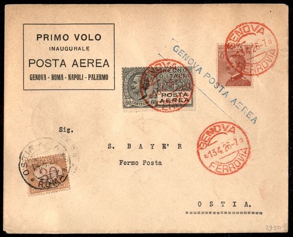 Primo Volo Genova Ostia del 13.4.26 (Longhi 1552) - circa 20 lettere volate