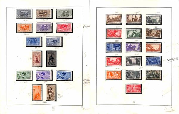 REGNO - 1861/1942 - Collezione avanzata di valori e serie complete del periodo montati in fogli ed album Safe - qualità mista con qualche buona presenza - nuovi ed usati - da esaminare