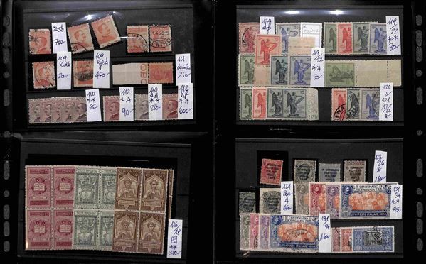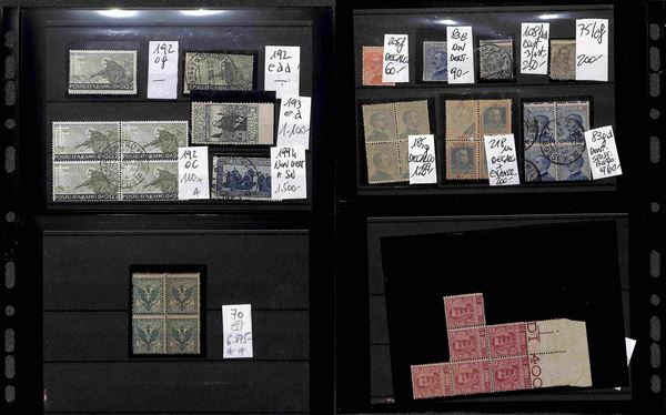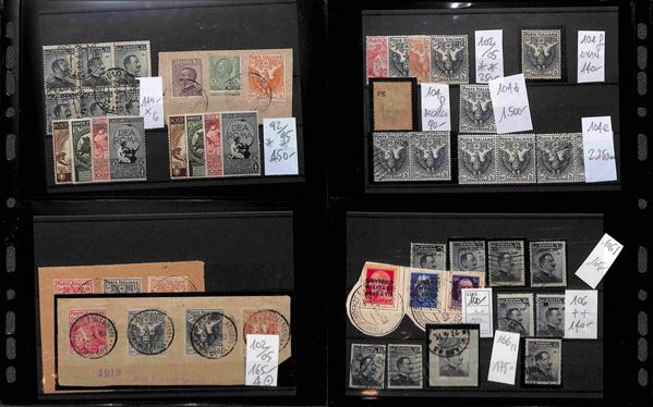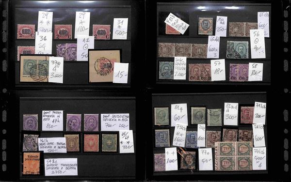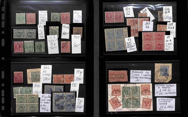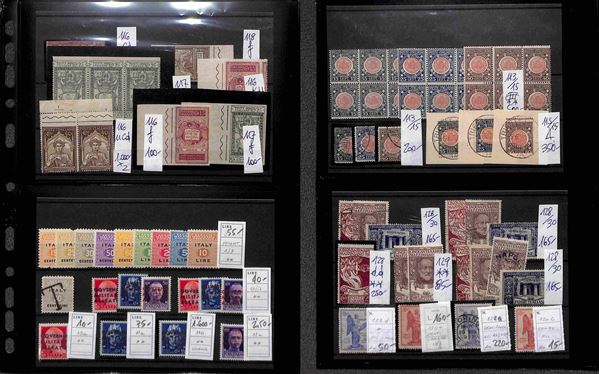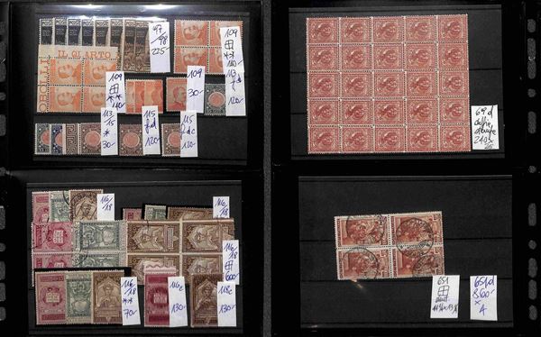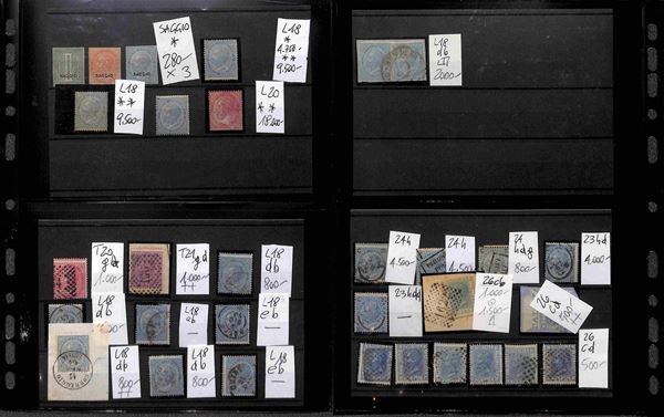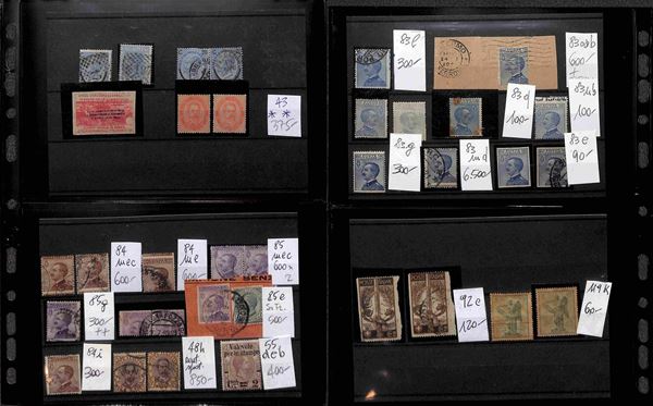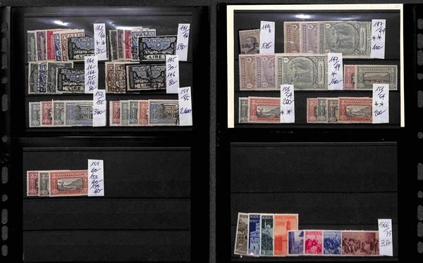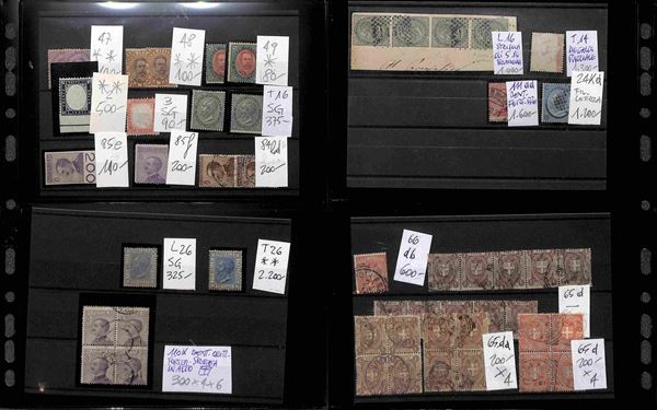 REGNO D'ITALIA - 1862/1945 - Insieme ordinato e numerato di valori nuovi e usati del periodo montati su cartoncini in 1 album - molto materiale anche interessante con serie complete e varietà - valore di catalogo secondo conferente oltre 100.000 euro - ottimo per dettaglio - merita esame