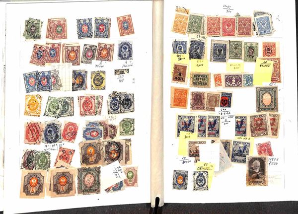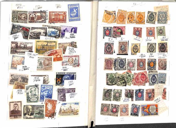 RUSSIA - 1860/1990 circa - Accumulazione/Collezione di migliaia di valori principalmente usati montati in grande album artigianale + raccoglitore - buone presenze - da esaminare