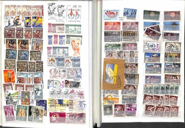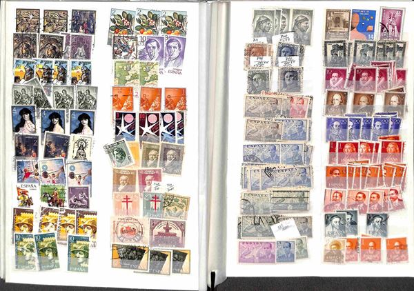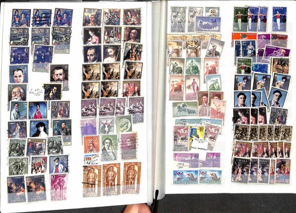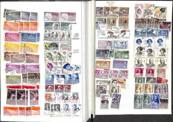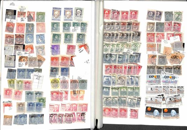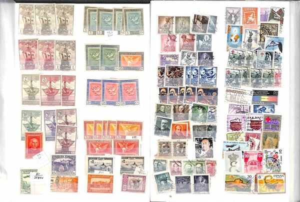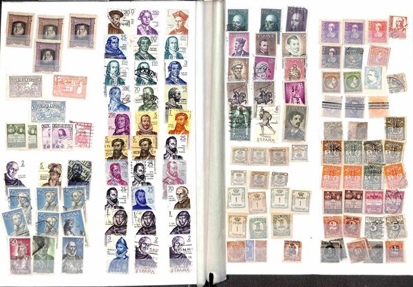 SPAGNA - 1864/1992 - Collezione di valori prevalentemente usati del periodo montati in 10 pagine di raccoglitore con presenza di servizi - da esaminare