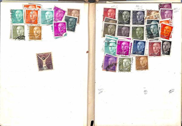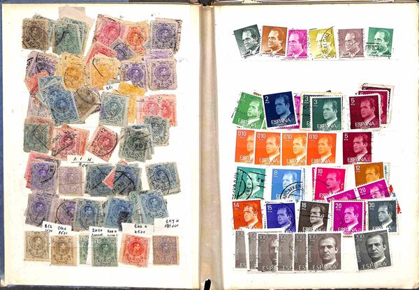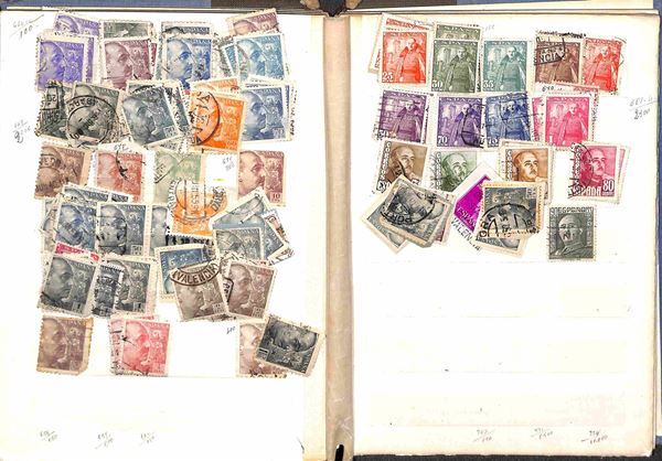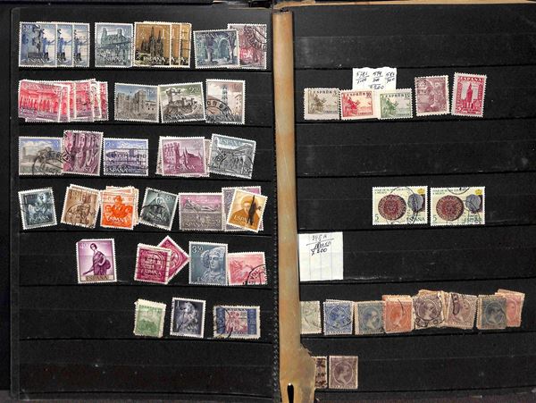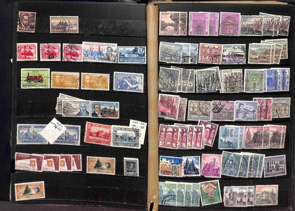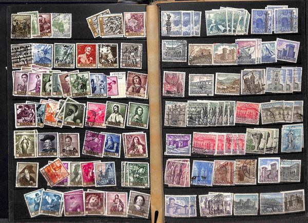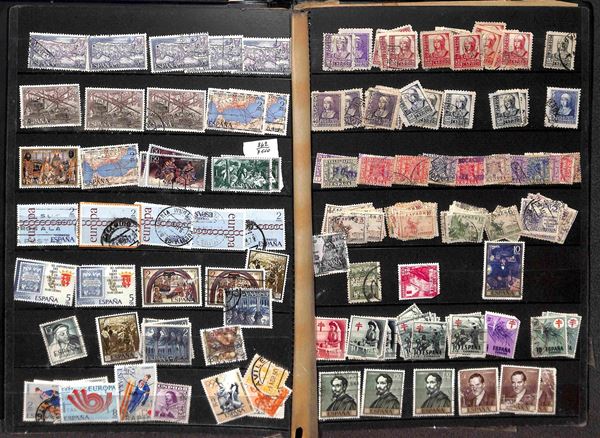 SPAGNA - 1909/1975 - Accumulazione di valori del periodo usati montati in due raccoglitori - da esaminare