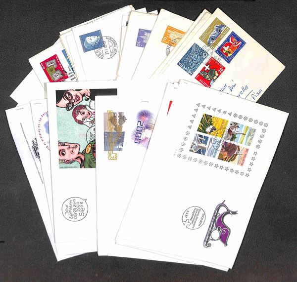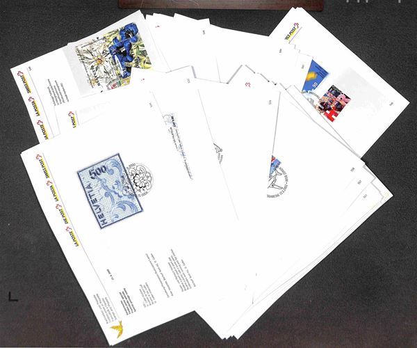 SVIZZERA - 1950/2003 - Accumulazione ordinata di buste FDC cartoline foglietti primo giorno del periodo in 4 piccole scatole - molto materiale ideale per dettaglio