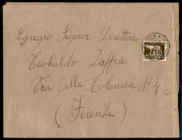 Tariffa ciechi - 5 cent (243) su busta da Campo - Bagni San Giuliano Pisa per Firenze del 26.10.31