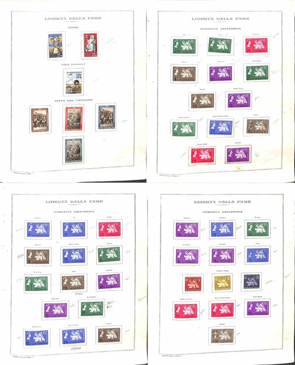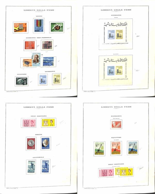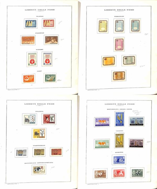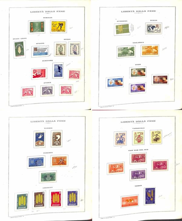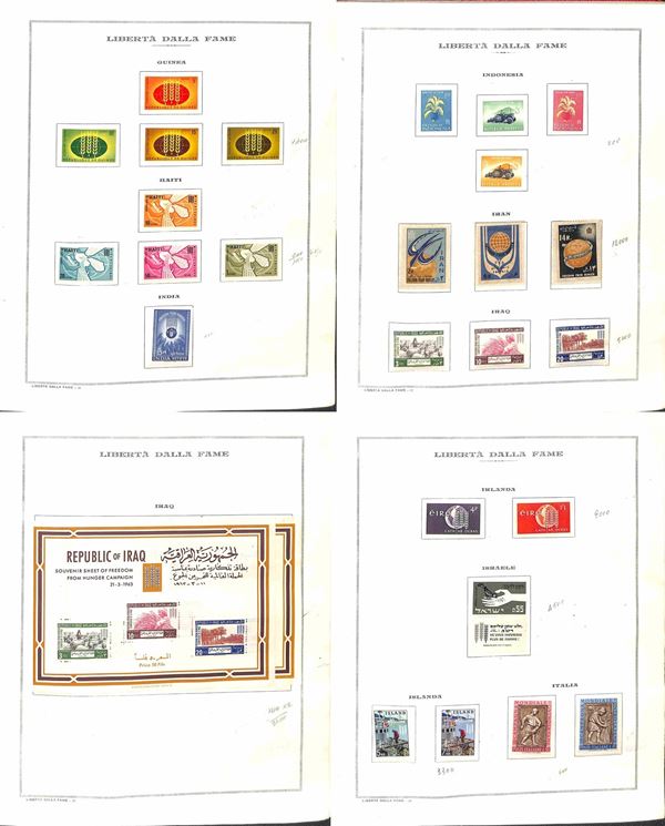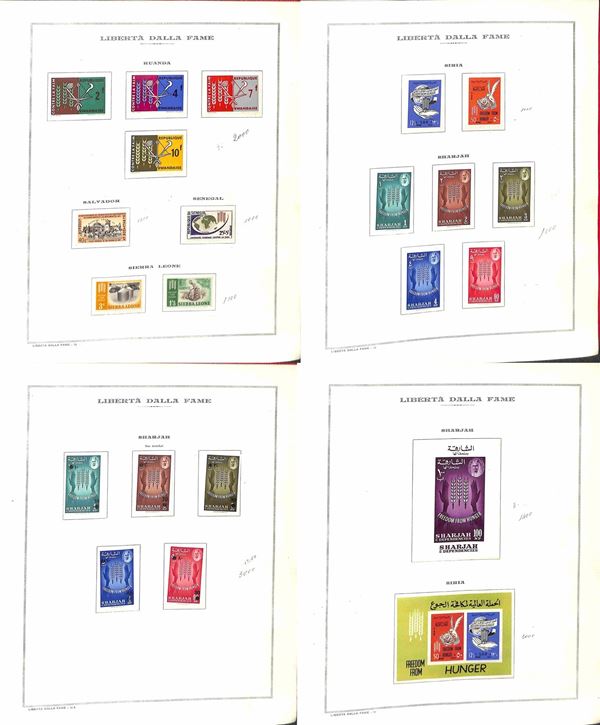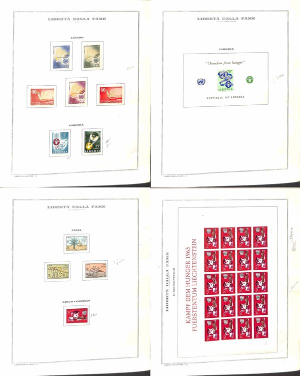TEMATICA - 1963 Libertà dalla Fame - Collezione di valori serie complete e foglietti emessi dai vari paesi montati in album e fogli Marini - gomma integra