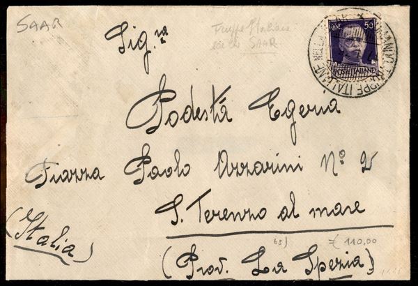 Truppe italiane nella SAAR - busta affrancata con 50 cent Imperiale (251) per S. Terenzo del 17.1.35