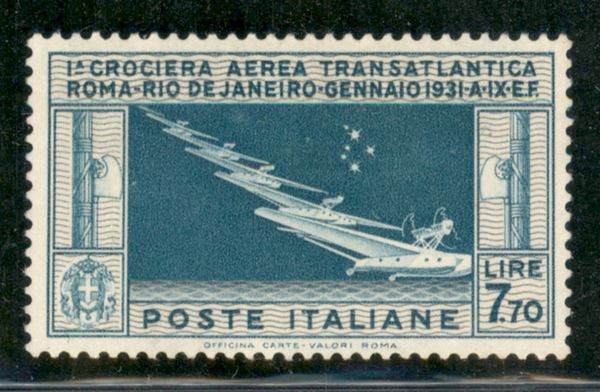 1930 - 7,70 lire Balbo (25) - ben centrato - gomma integra - cert. Biondi