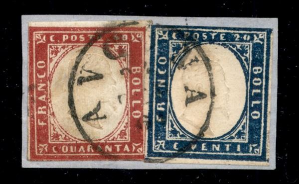 20 cent azzurro grigio (15Cc) + 40 cent carminio (16Ca) - usati su frammento - Ancona 24.1.61