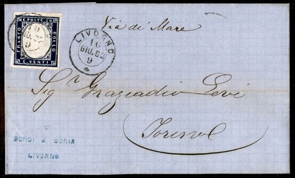 Fresca lettera Via di Mare da Livorno 10.6.62 recante 20 cent (15C) molto bene marginato - ex coll. Provera