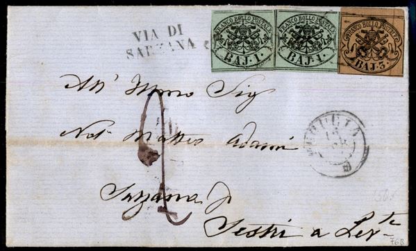 Lettera affrancata con due 1 baj (1b) + 3 baj (3b) da Perugia a Sestri Levante del 13.4.60