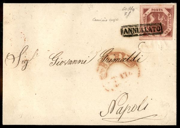 Lettera da Bari affrancata con 2 grana carminio cupo (7f) - buoni margini - Colla