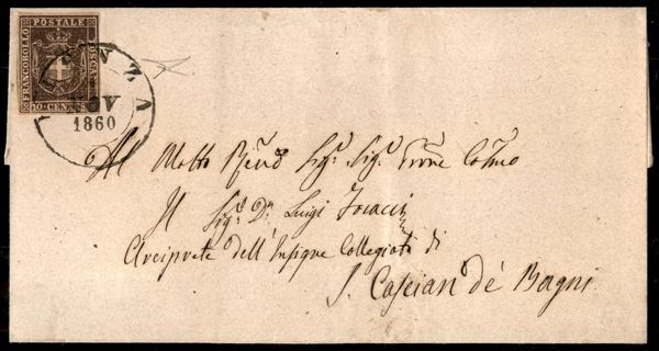 Lettera da Pienza 1.11.60 (P.ti 7) recante 10 cent (19) con margini bianchi - ex coll. Provera - Bottacchi