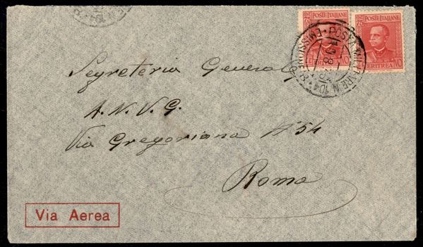 Posta Militare N. 104 Emissione B - due 75 cent (200 - Eritrea) su aerogramma per Roma del 10.8.1936
