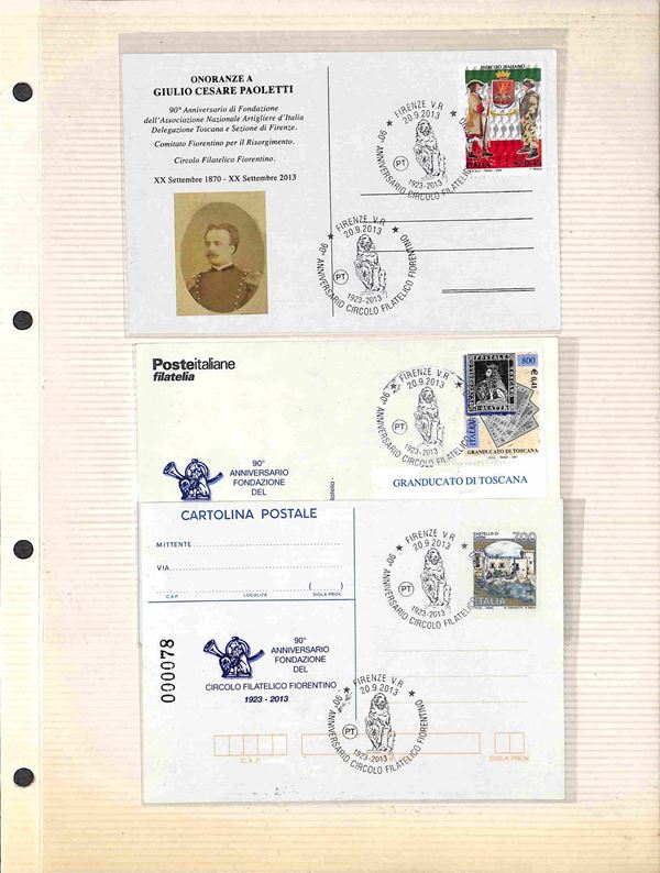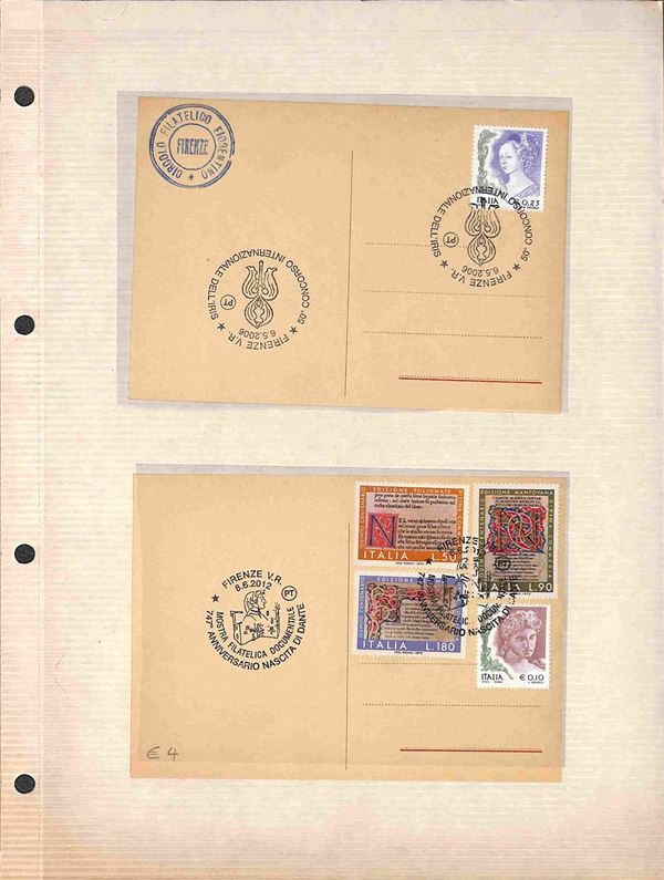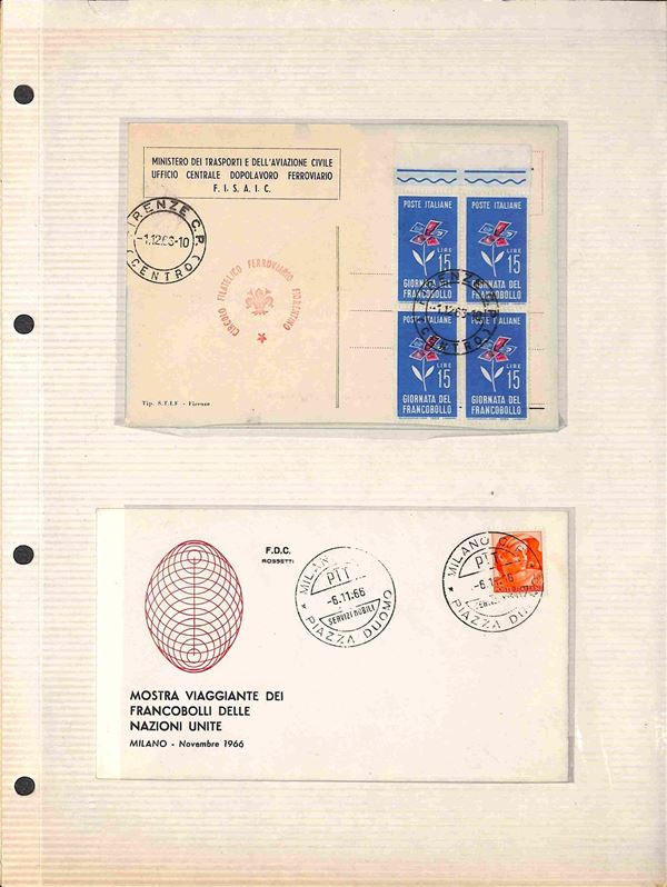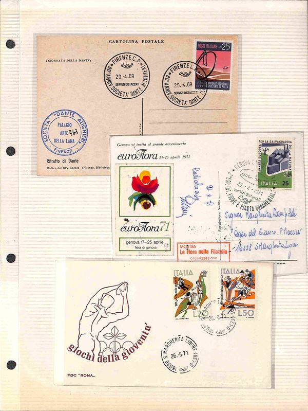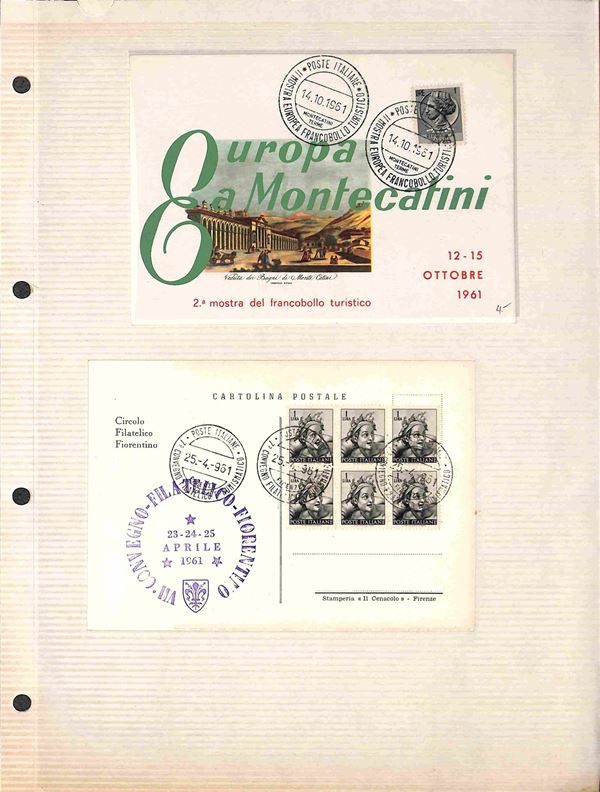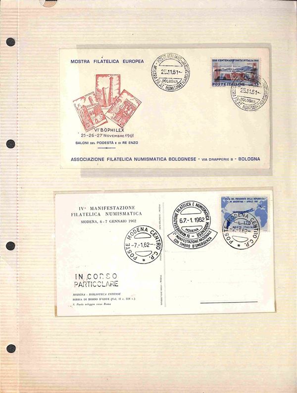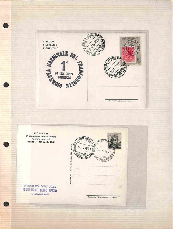 REPUBBLICA - 1946/2015 - Collezione ordinata di 70 cartoline buste e documenti di manifestazioni filateliche sportive aeronautica e spazio montata in un raccoglitore ad anelli - da esaminare