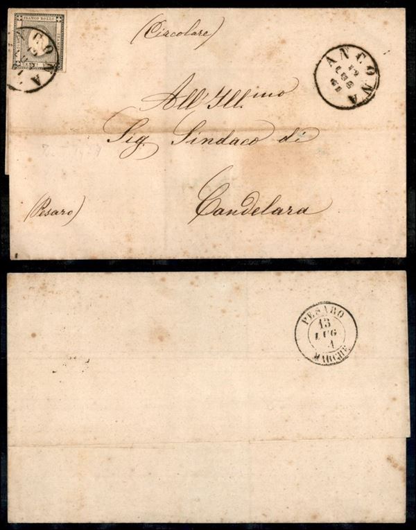 1 cent (19a - Sardegna) su circolare da Ancona a Candelara del 12.7.61 (350)