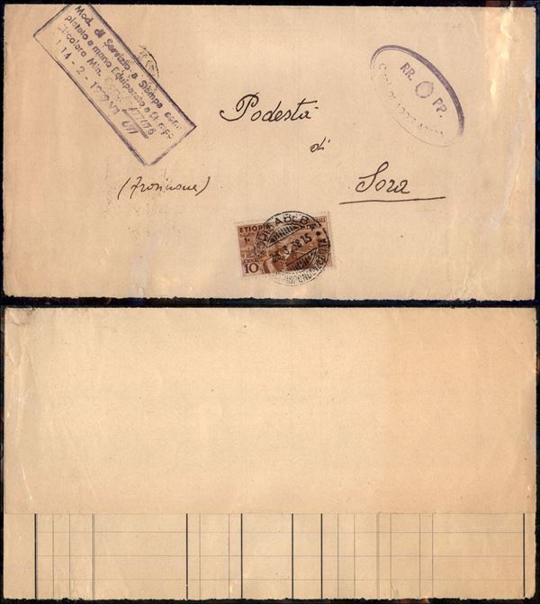 10 cent (1) isolato su parte di piego da Addis Abeba a Sora del 25.3.38