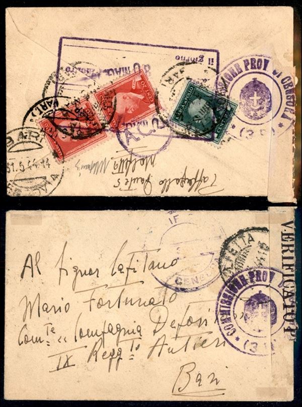 10 cent (21) + due 20 cent (22) - bustina da Molfetta a Bari del 31.5.44