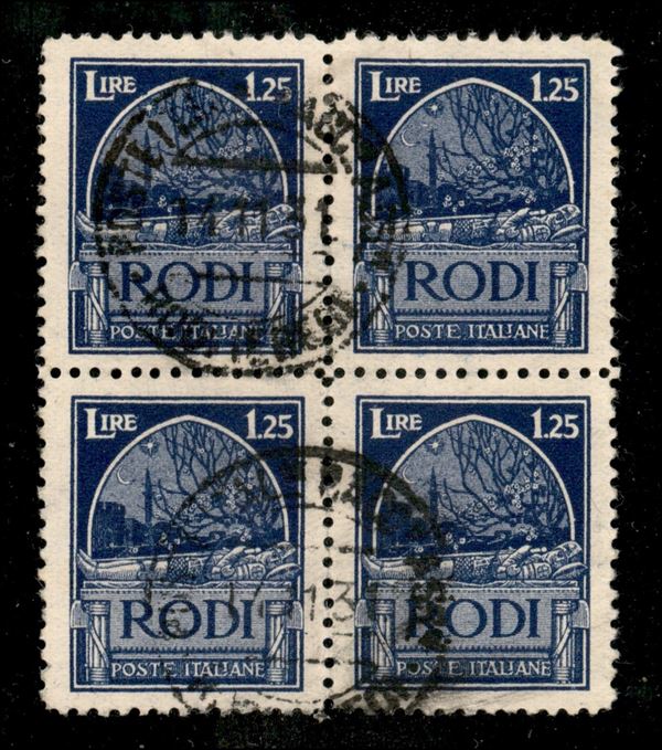 11,25 lire Pittorica (9) - quartina usata a Rodi il 14.11.31