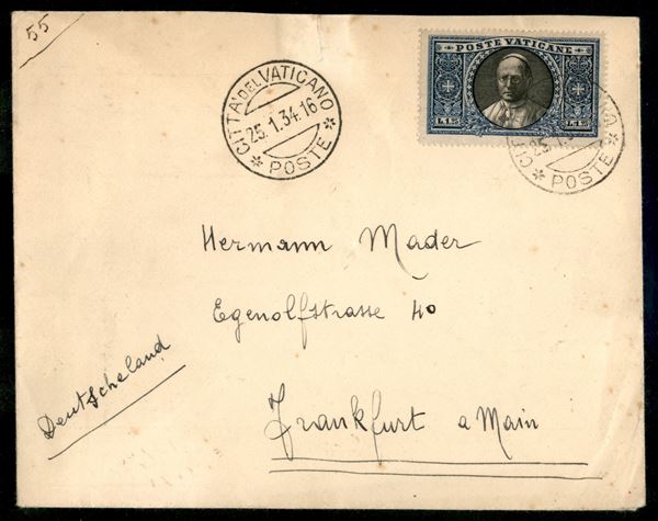 1,25 lire Giardini e Medaglioni (29) su lettera per la Germania del 25.1.34