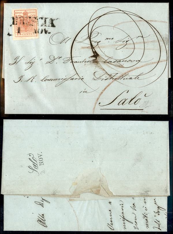15 cent (5c - primo sottotipo - carta sottile) su lettera da Brescia a Salò del 1.11.51 (240+)