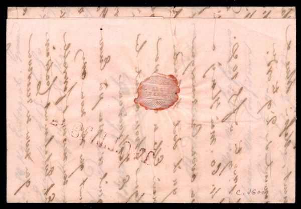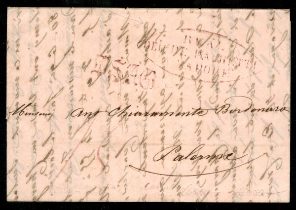 1843 Lettera in colore rosa da Marsiglia 29 sett. diretta Palermo con ovale Real Delegaz. Pacchetti Vapore della Compagnia De Martino