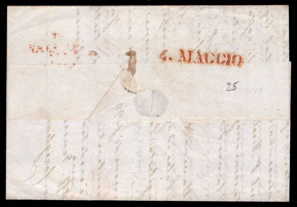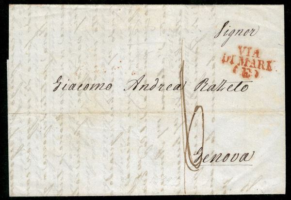 1846 Bella lettera da Messina 28 apr. con tassa "6"Genova e bollo Via di Mare (E) in rosso