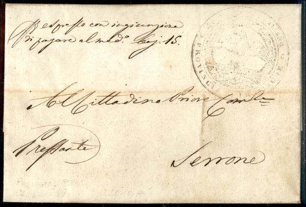 1849 - Repubblica Romana - Comune di Paliano (Ovale) - Lettera in franchigia per Serrone del 7.6.49