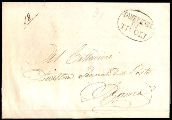 1849 - Repubblica Romana - Direzione di Tivoli (Ovale) - Lettera in franchigia per Roma del 11.4.49