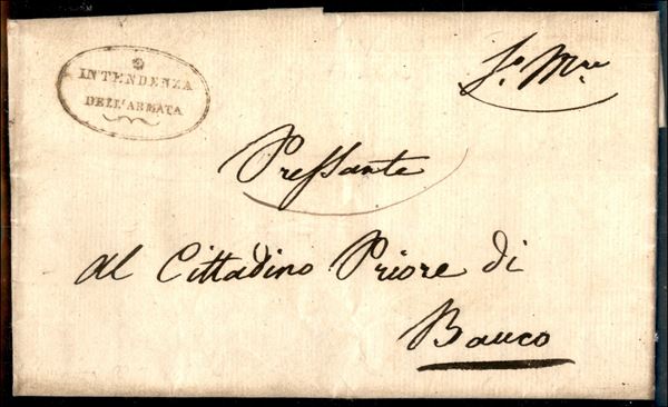 1849 - Repubblica Romana - Intendenza dell'Armata (Ovale) - Lettera in franchigia per Bauco del 22.3.49