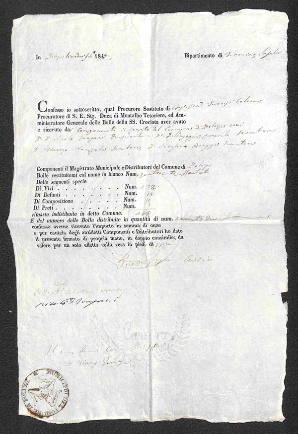 1849 - Trinacria di Polizzi - documento di ricevuta