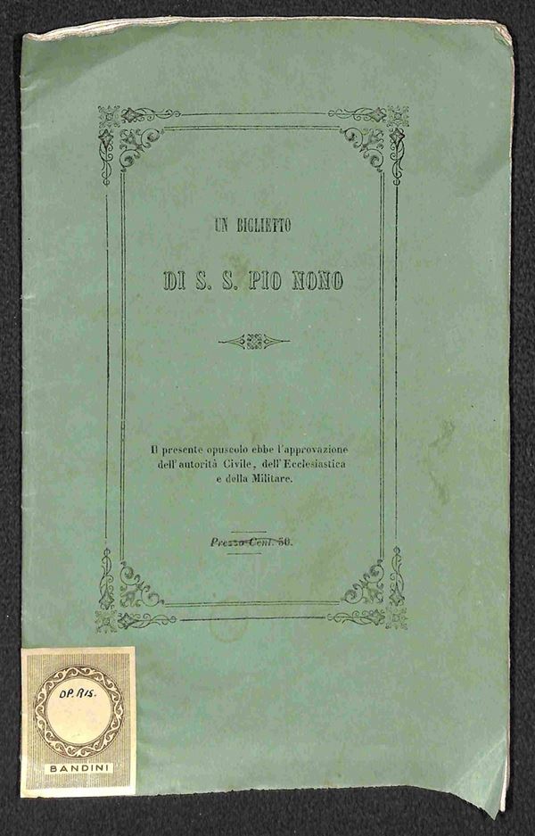 1849 - Un Biglietto di S.S. Pio Nono - pensieri di Augusto Bernardi - opuscolo di 28 pagine (14x22)