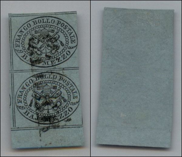 1852 - Mezzo bai (1a) - coppia verticale bordo di foglio usata - stretta a destra (375+)