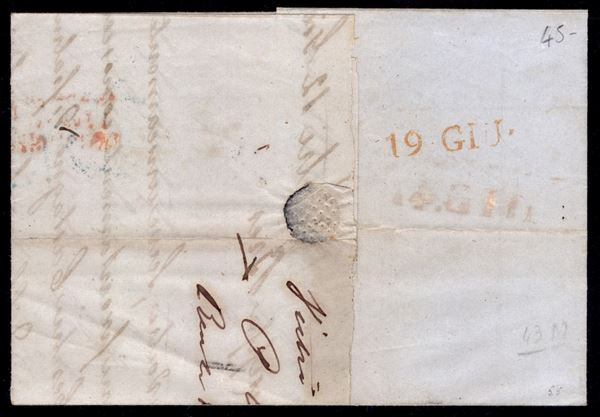 1852 Lettera da Vetri sul Mare 12 giu. per Nizza Marittima con bollo su tre righe Piroscafi Postali Italiani in rosso - segno di tassa