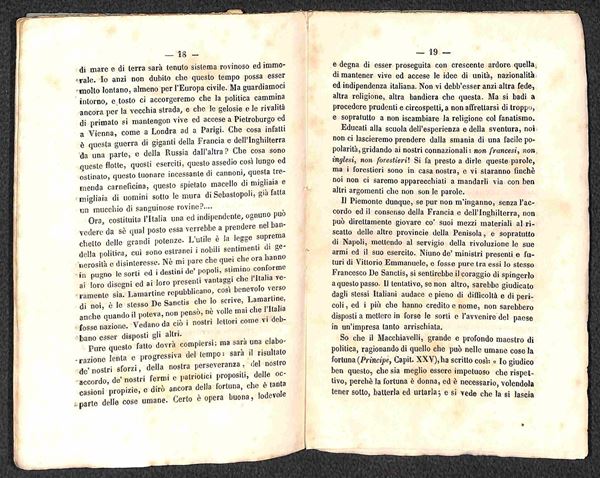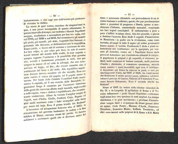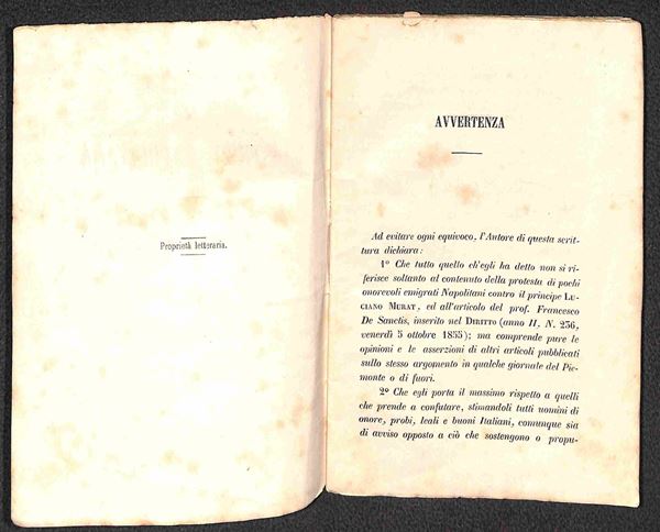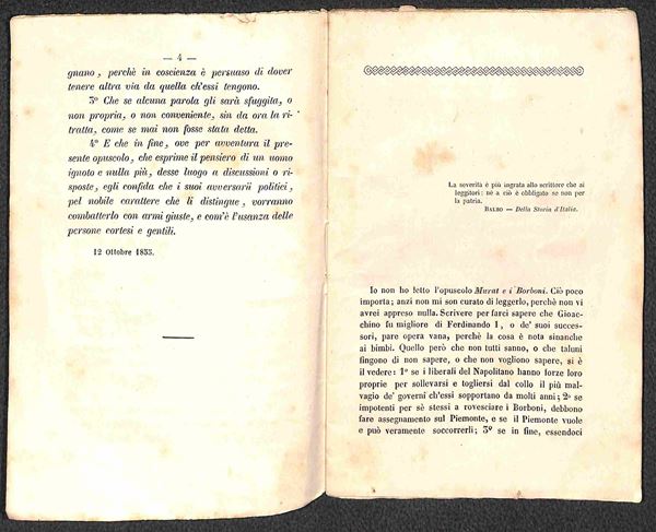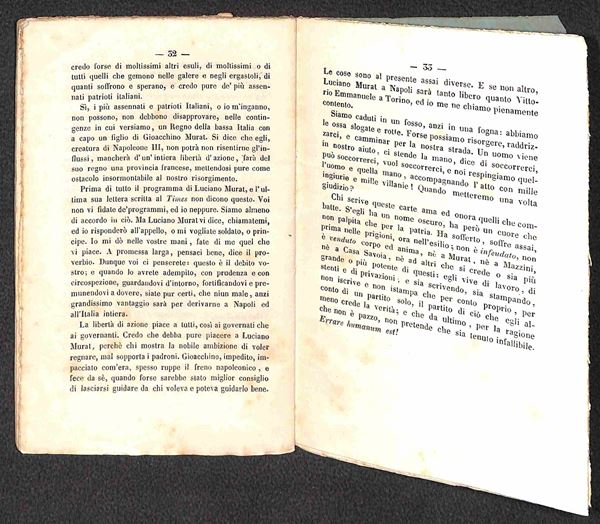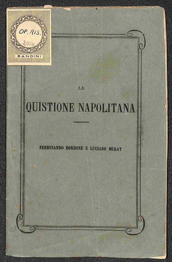 1855 - La Quistione Napoletana/Ferdinando Borbone e Luciano Murat - opuscolo di 44 pagine rilegato con punto di filo centrale (12x18)