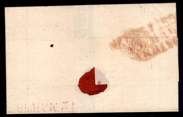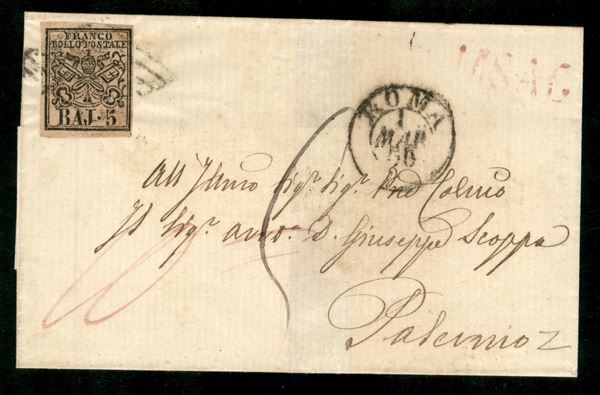 1856 Piccola lettera affrancata con 5 baj rosa da Roma 1 mar. 56 per Palermo