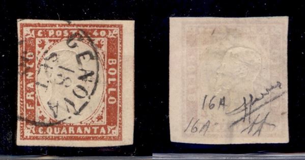 1857 - 40 cent (16A - rosso scarlatto) usato a Genova - Diena + Sorani (200)